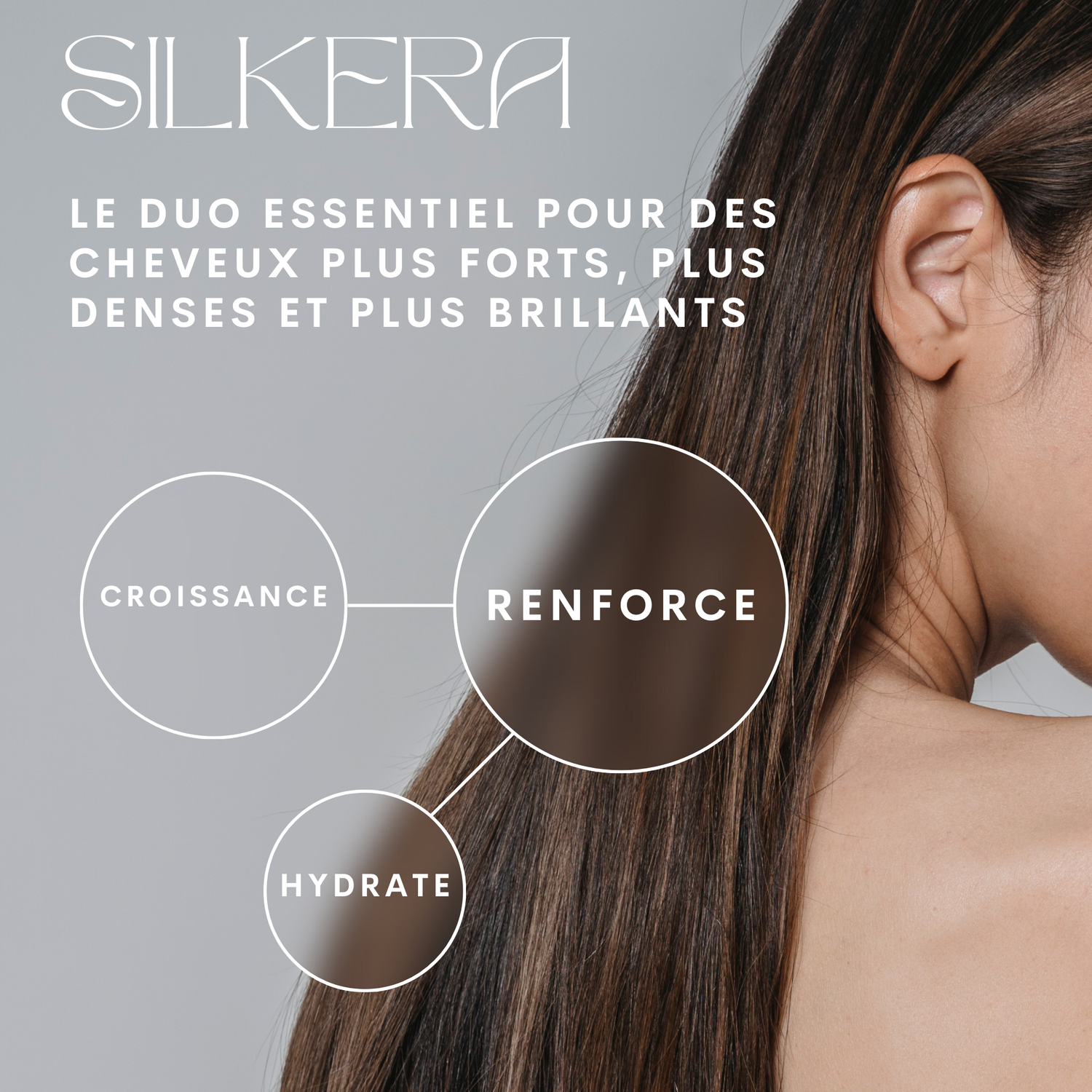 Silkera est un rituel capillaire premium pensé pour renforcer la fibre, rééquilibrer le cuir chevelu et révéler une brillance soyeuse, jour après jour.